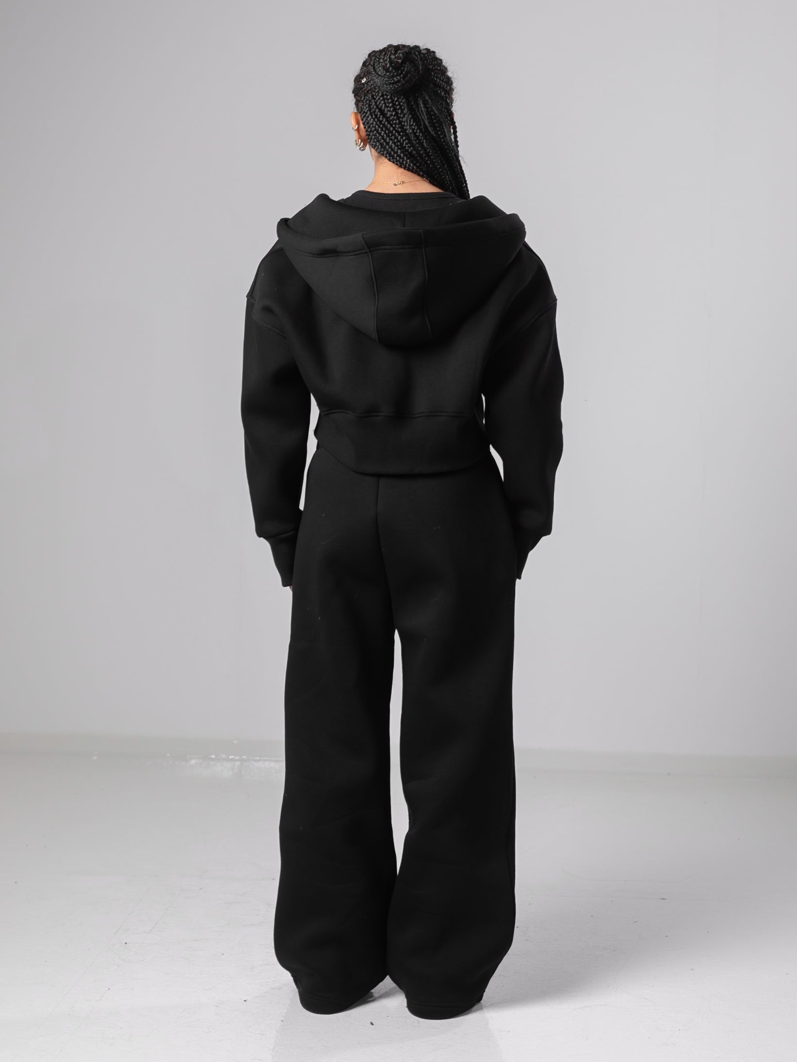 Black Cropped Jacket and Sweatpants Sets